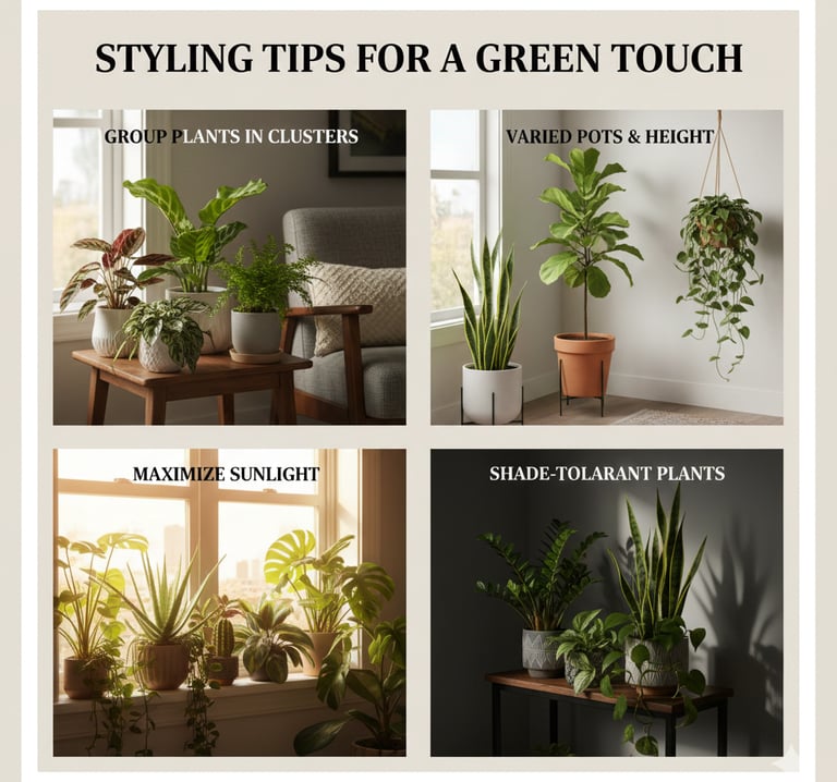 Group plants in clusters to create mini indoor gardens.