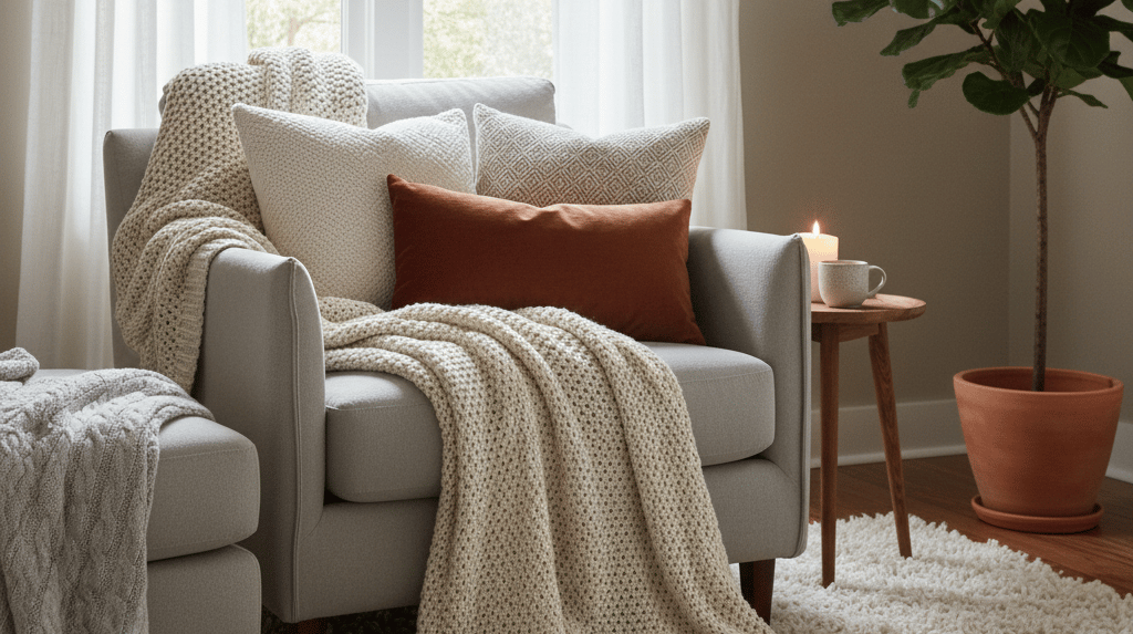 Soft textures are not just for living rooms or bedrooms. Adding layered fabrics in hallways, reading nooks, or even kitchens with soft rugs or fabric-covered stools can bring warmth to unexpected corners. Simple touches make a huge difference in creating a cohesive, cozy home.