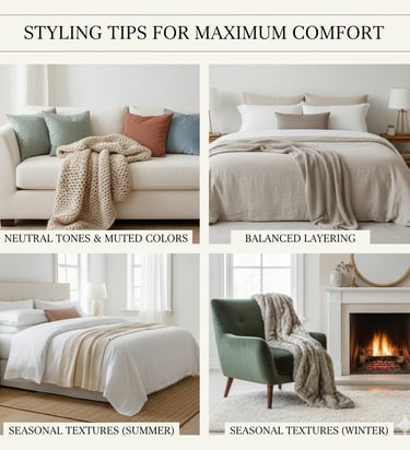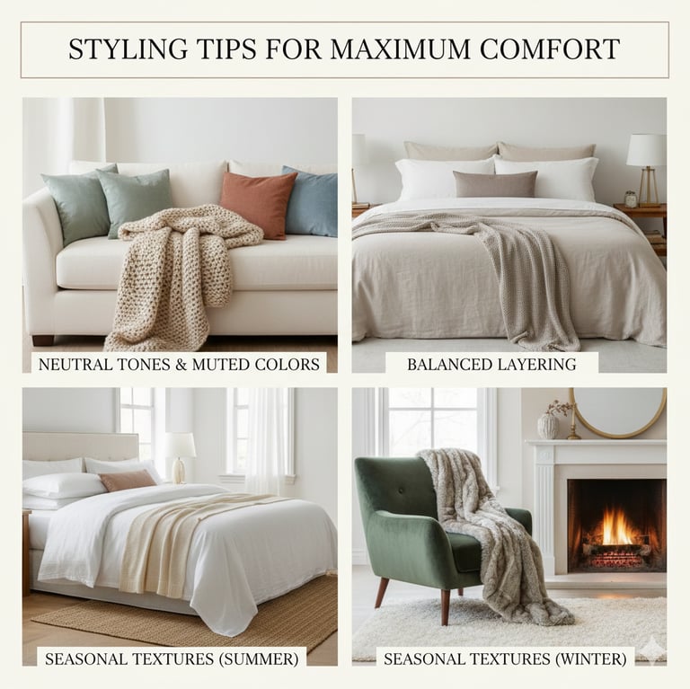 Incorporate textures that match the season—light linens for summer, plush velvets for winter.