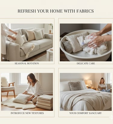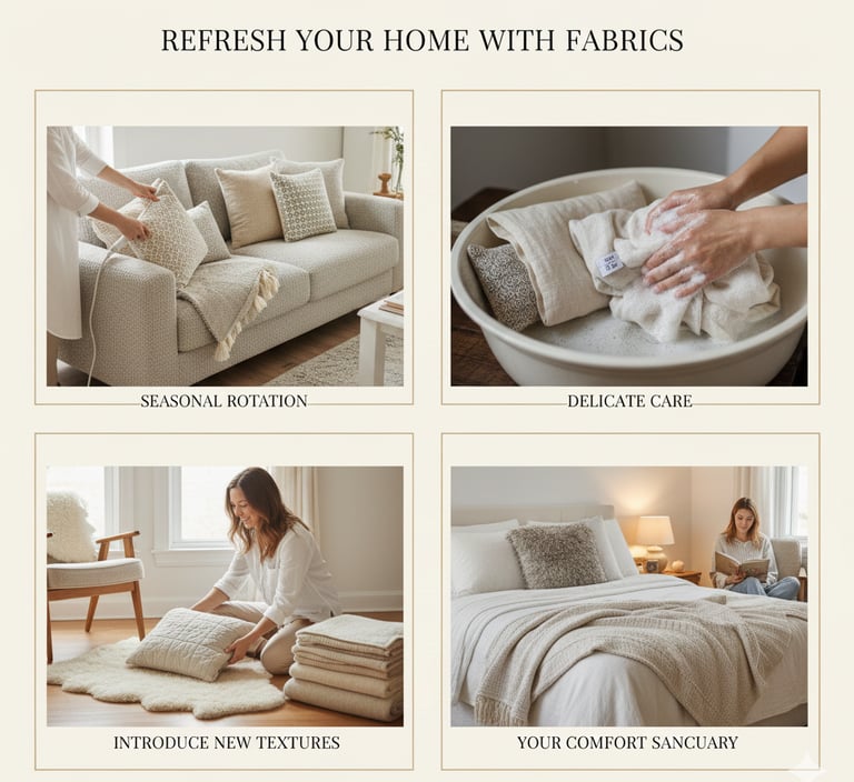 To keep your fabrics feeling fresh and inviting, rotate throws and cushions seasonally, wash and care for delicate materials properly, and mix in new textures from time to time. This practice keeps your space dynamic and ensures that comfort never goes out of style.