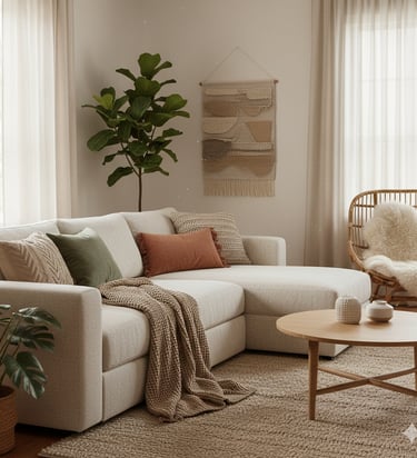 Layered fabrics such as throws, cushions, rugs, and curtains add depth and warmth to a room. They invite touch, create a cozy atmosphere, and make spaces feel more dynamic and lived-in. Soft textures can elevate a minimal room or add richness to an already warm setting.