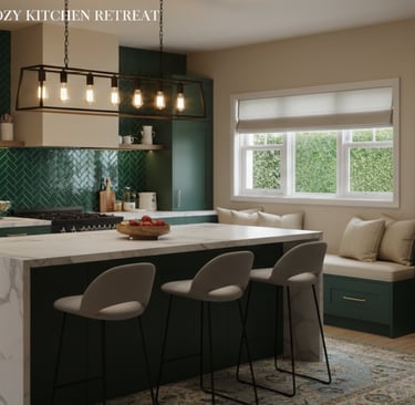 If space allows, create a cozy kitchen nook with a built-in bench and a small table. It’s perfect for intimate breakfasts, casual meals, or simply enjoying a cup of coffee.